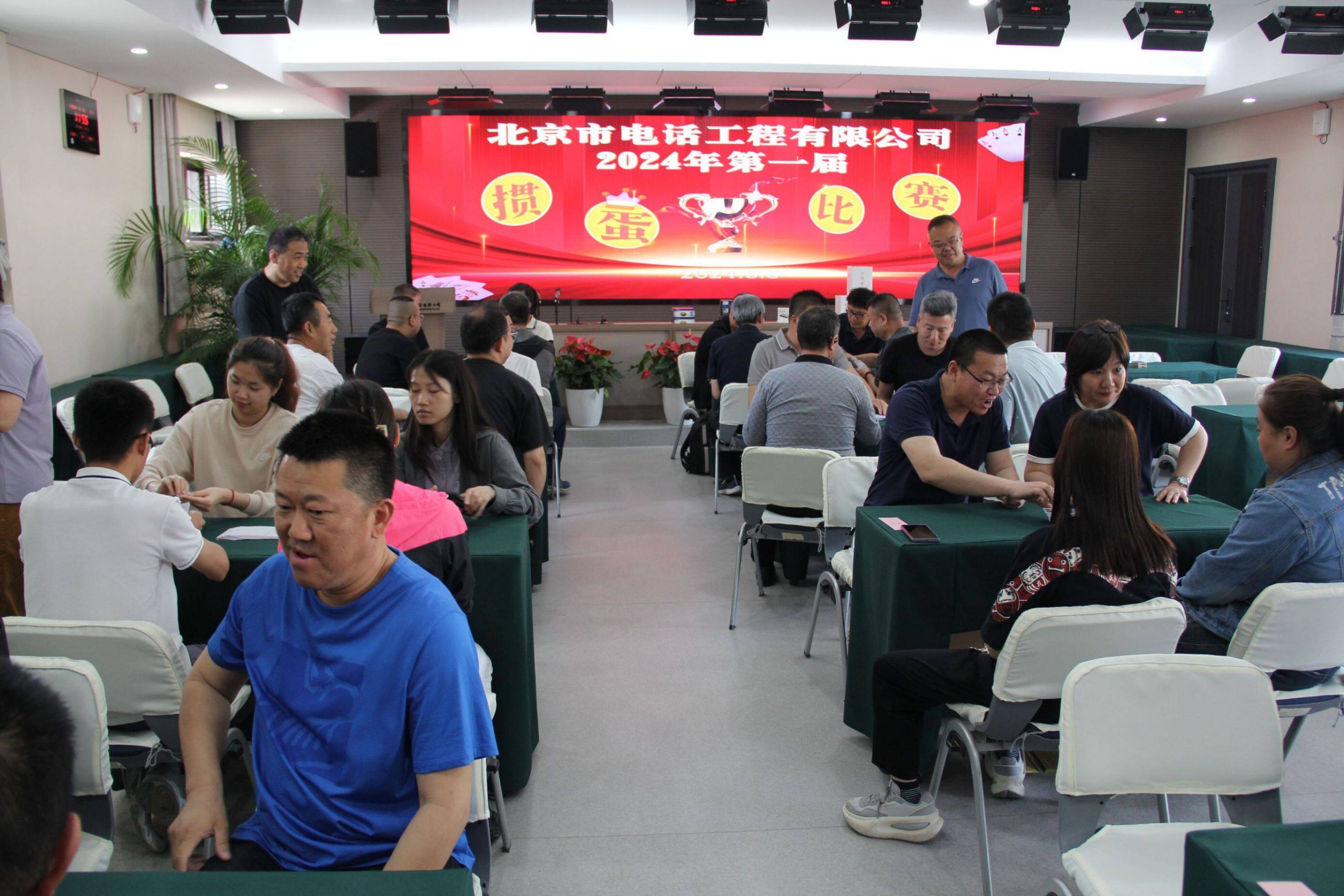 2024年5月8日中午,北京市電話工程有限公司2024年第一屆摜蛋比賽在多功能廳拉開序幕。這是一場智慧與協作的較量,也是一場展現團隊精神和個人風采的盛會。本次比賽吸引了來自公司各部門、分公司的員工積極參與。