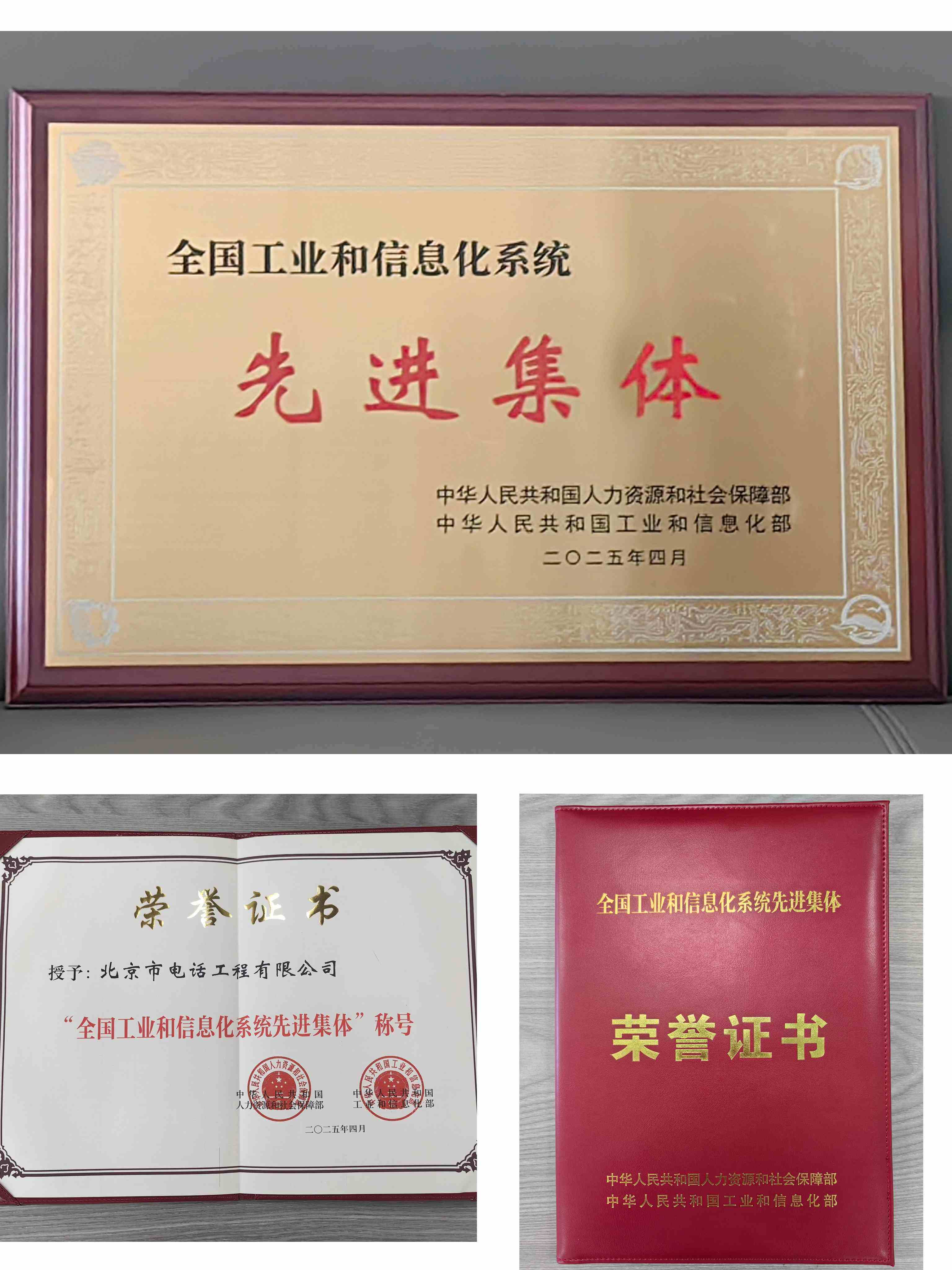 4月27日,全國工業(yè)和信息化系統(tǒng)先進(jìn)集體、勞動模范和先進(jìn)工作者表彰大會在京召開。北京市電話工程有限公司榮獲“全國工業(yè)和信息化系統(tǒng)先進(jìn)集體”稱號。
